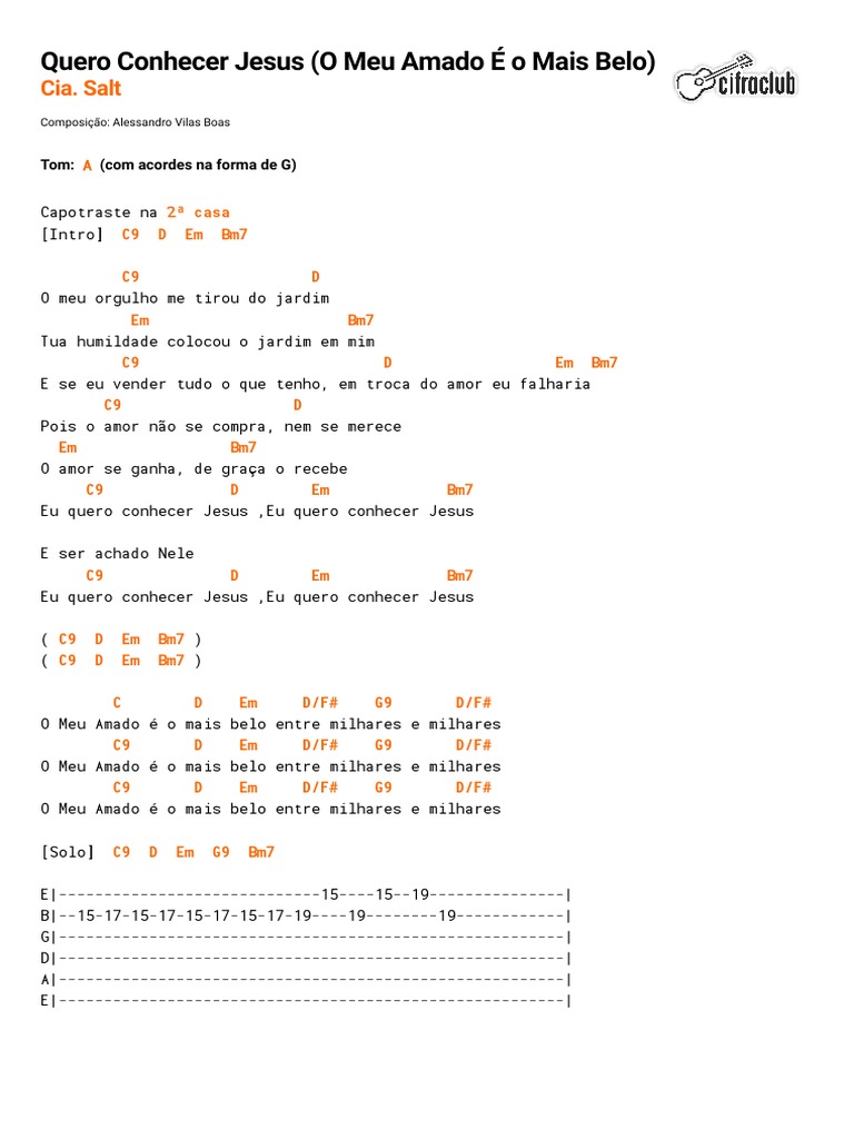 Quero Conhecer Jesus Cia Salt Partitura Para Saxofone Tenor Soprano Clarinete Bb from portalpartituras.com.br Quero conhecer jesus (o meu amado é o mais belo). Meu amado é o mais belo entre milhares e milhares não nasci pra encher o bolso de dinheiro eu não nasci pra encher igreja eu nasci pra conhecer jesus. Meu orgulho me tirou do jardim sua humildade colocou o jardim em mim se eu vender tudo o que tenho em troca do pois o amor não se compra, nem se merece o amor se ganha, de graça o recebe. C9 d pois o amor não se compra, nem se merece em bm7 o amor se ganha, de graça o recebe. C9 d em bm7 eu quero conhecer jesus ,eu quero conhecer jesus. Salt 7 exibições ,1 páginas. Cia salt eu quero conhecer jesus. Alessandro vilas boas ___ ___ facebook: